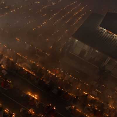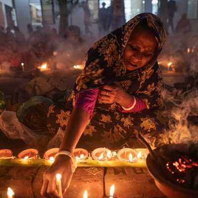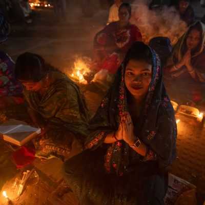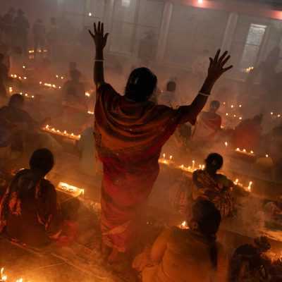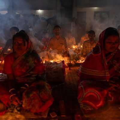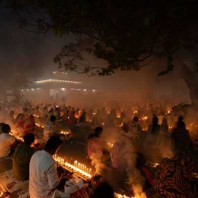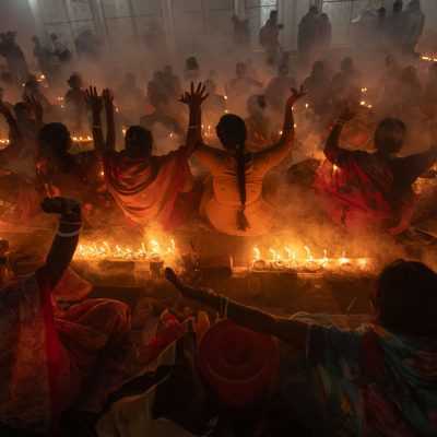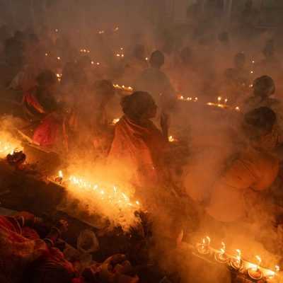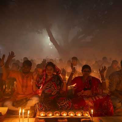 Rakher Upobash es un festival de luz, esperanza y fe. Miles de devotos hindúes se reúnen frente al templo Shri Shri Lokenath Brahmachari Ashram para el festival religioso Rakher Upobash en Barodi, cerca de Narayangunj, Bangladesh. Después de la puesta del sol, los devotos se sientan frente al templo con velas y realizan oraciones durante horas. La luz y la sombra, el humo y el canto crean un ambiente fascinante para recordar de por vida. Lokenath Baba es adorado como una encarnación de Dios. Es un santo muy popular en Bengala Occidental y Bangladesh.