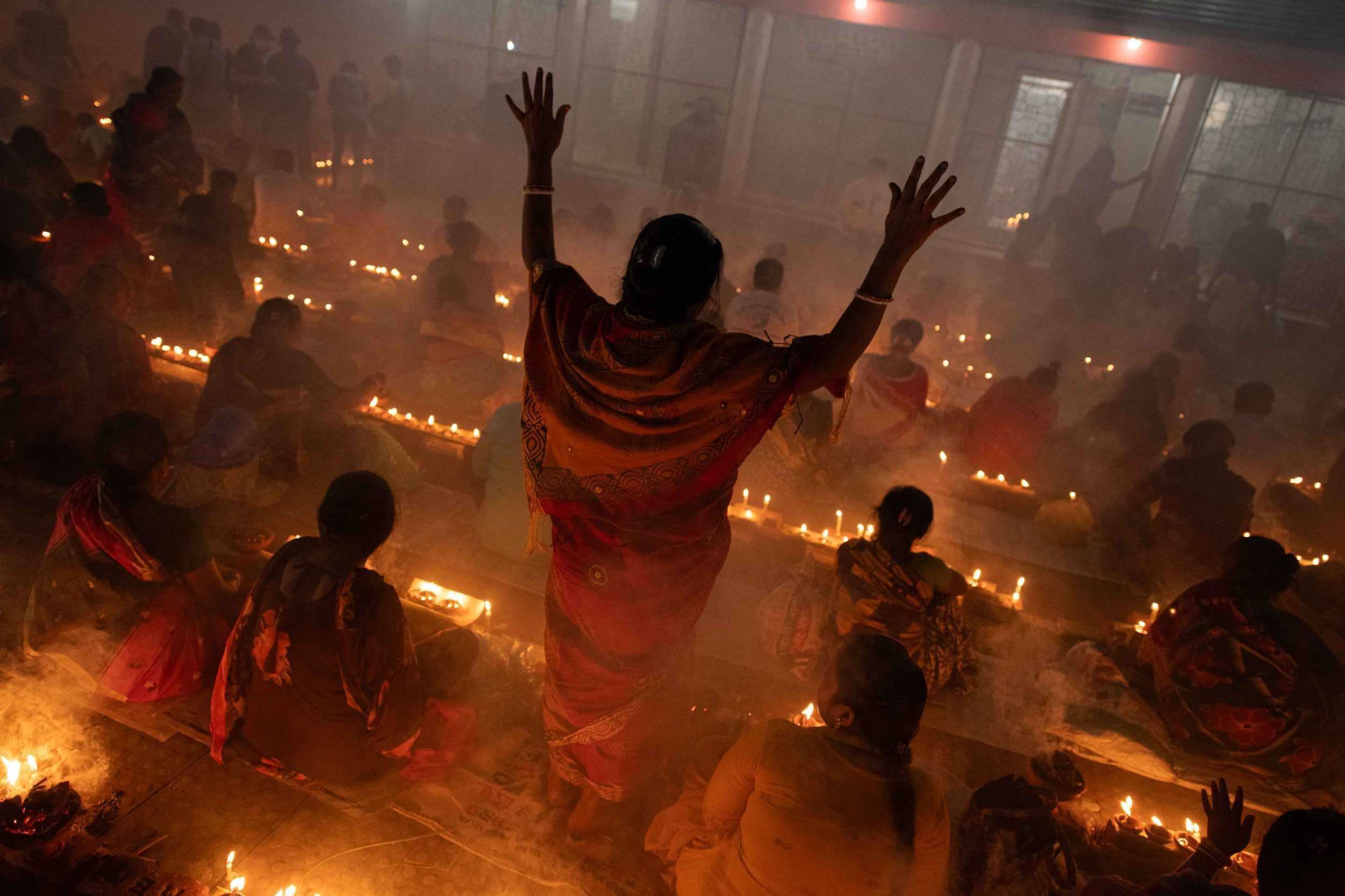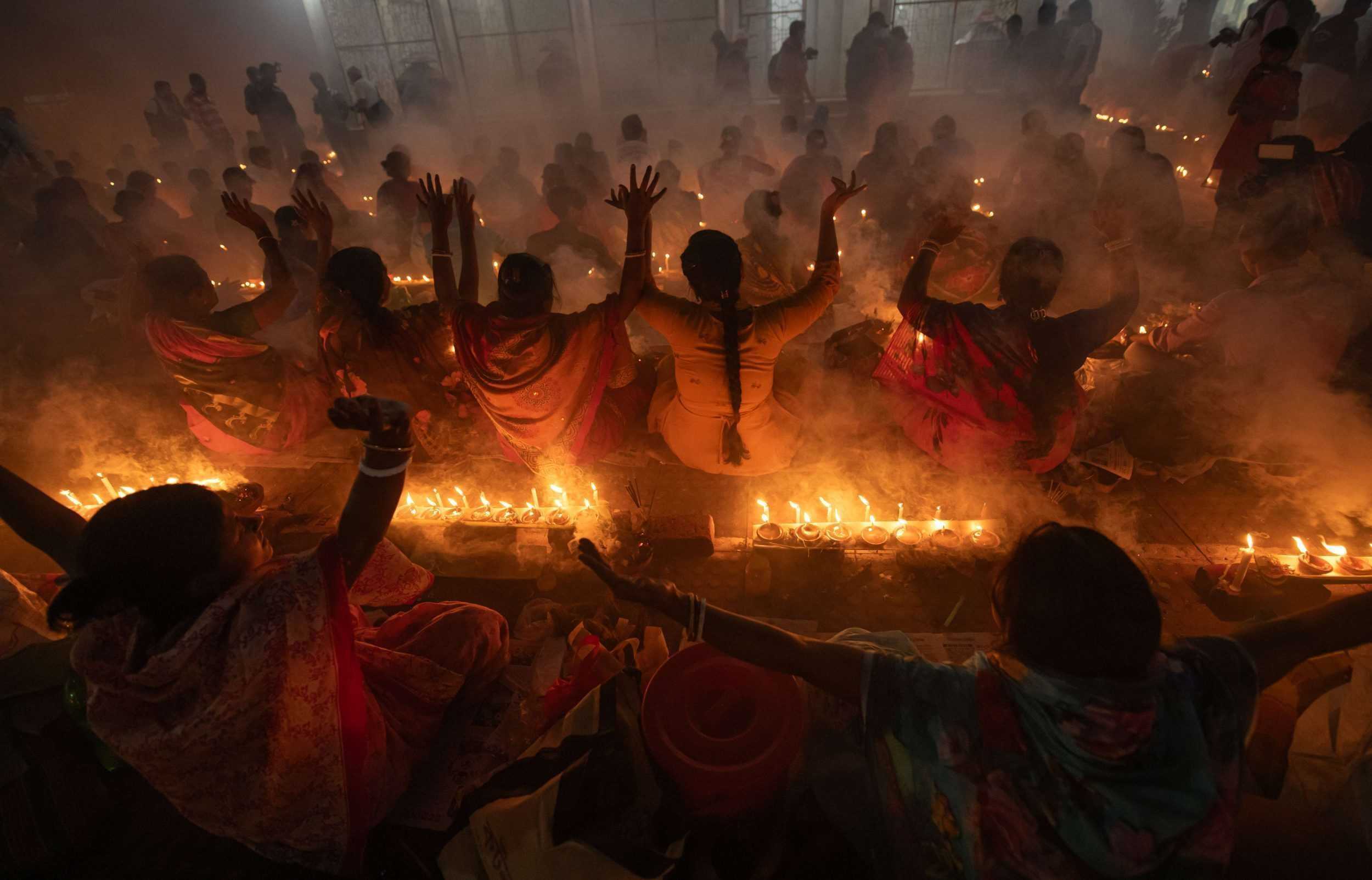 Rakher Upobash es un festival de luz, esperanza y fe. Miles de devotos hindúes se reúnen frente al templo Shri Shri Lokenath Brahmachari Ashram para el festival religioso Rakher Upobash en Barodi, cerca de Narayangunj, Bangladesh. Después de la puesta del sol, los devotos se sientan frente al templo con velas y realizan oraciones durante horas. La luz y la sombra, el humo y el canto crean un ambiente fascinante para recordar de por vida. Lokenath Baba es adorado como una encarnación de Dios. Es un santo muy popular en Bengala Occidental y Bangladesh.